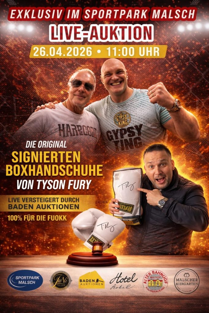 Organisiert von Rainer Gottwald erwartet Sie im Sportpark Malsch eine exklusive Charity-Versteigerung zugunsten der Kinderkrebshilfe Karlsruhe (FUOKK).