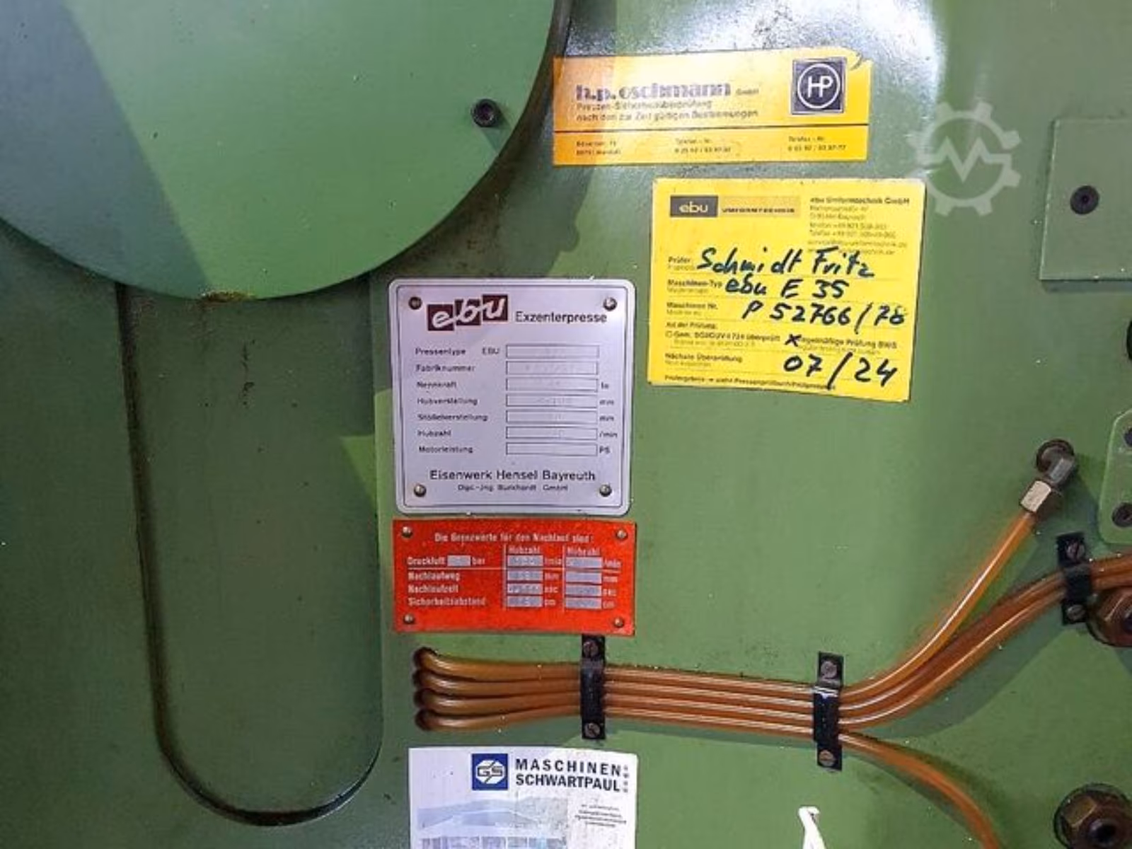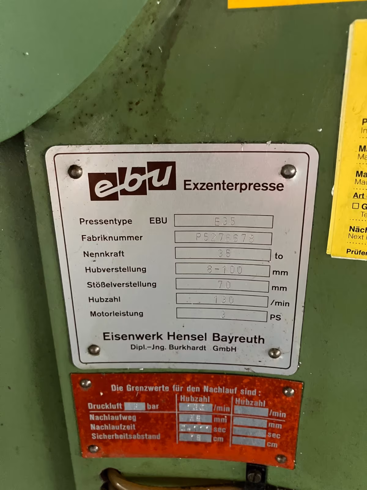 Verkauft wird eine robuste EBU E 35 Exzenterpresse, ideal für Stanz-, Umform- oder Biegearbeiten in der Metallverarbeitung.